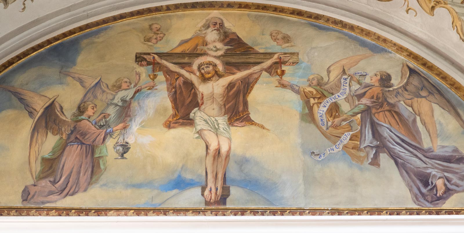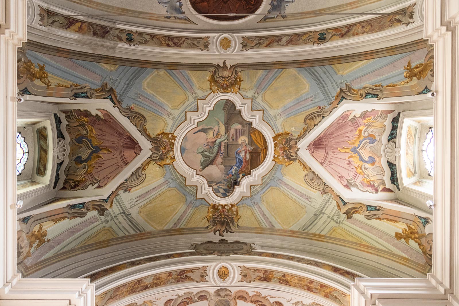 Il soffitto a volte è stato dipinto verso la metà del secolo scorso da Turildo Conconi, noto pittore molto attivo anche in Valtellina.