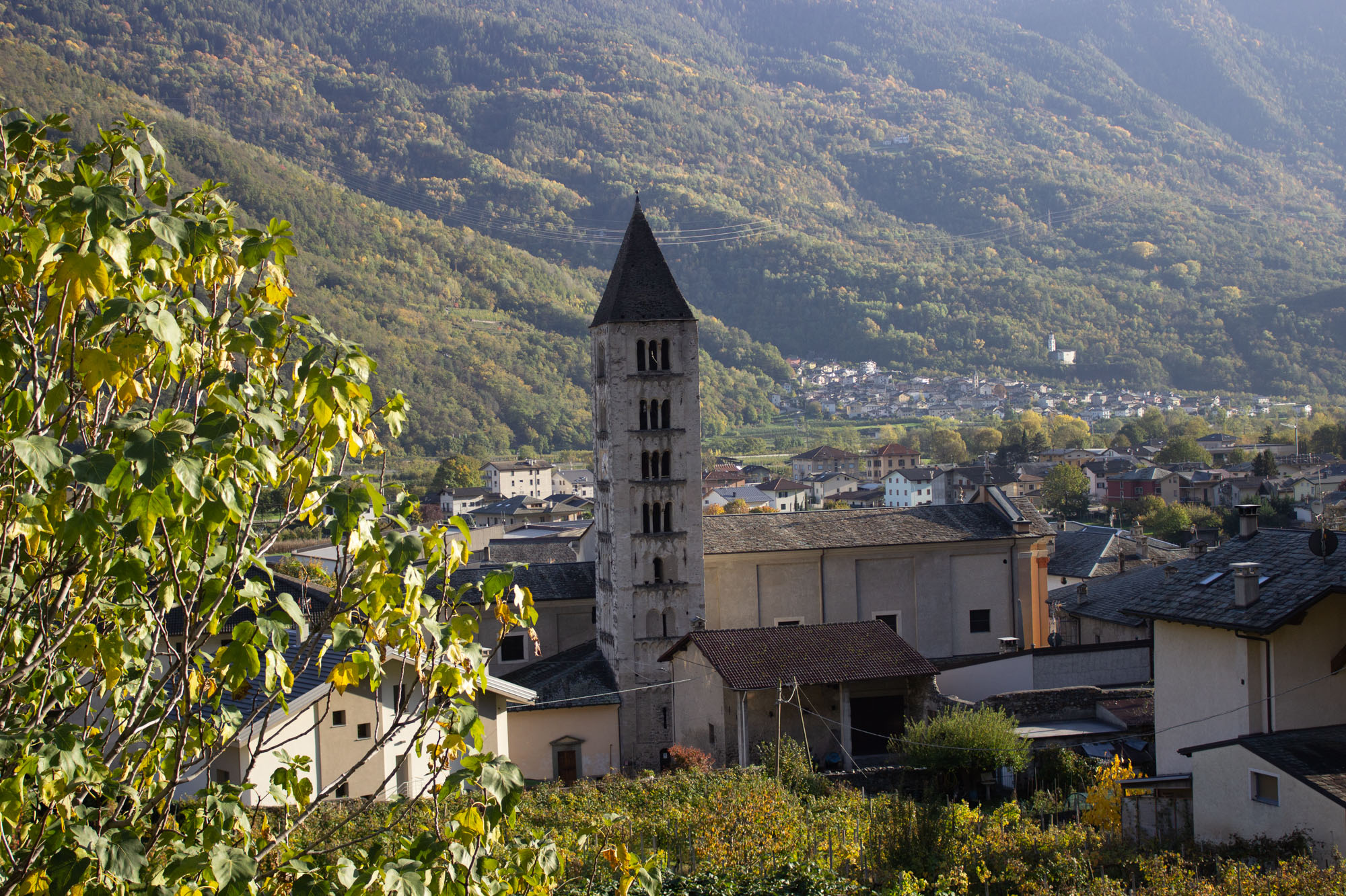 La collegiata di San Lorenzo sorge sulla piazza principale di Villa di Tirano, presso il palazzo municipale. Fu sede della pieve di Villa, fondata nel VII secolo con giurisdizione estesa fino alla Valle di Poschiavo, oggi territorio svizzero. Fu costruita in un punto strategico, a margine della strada che dal Bernina toccava il fondovalle e, attraverso il ponte sull’Adda, conduceva al passo dell’Aprica, verso le terre bresciane e venete.