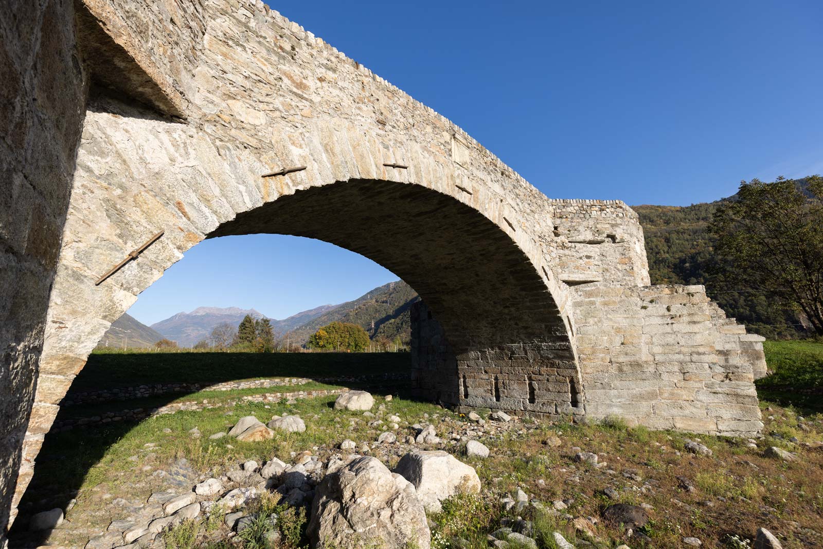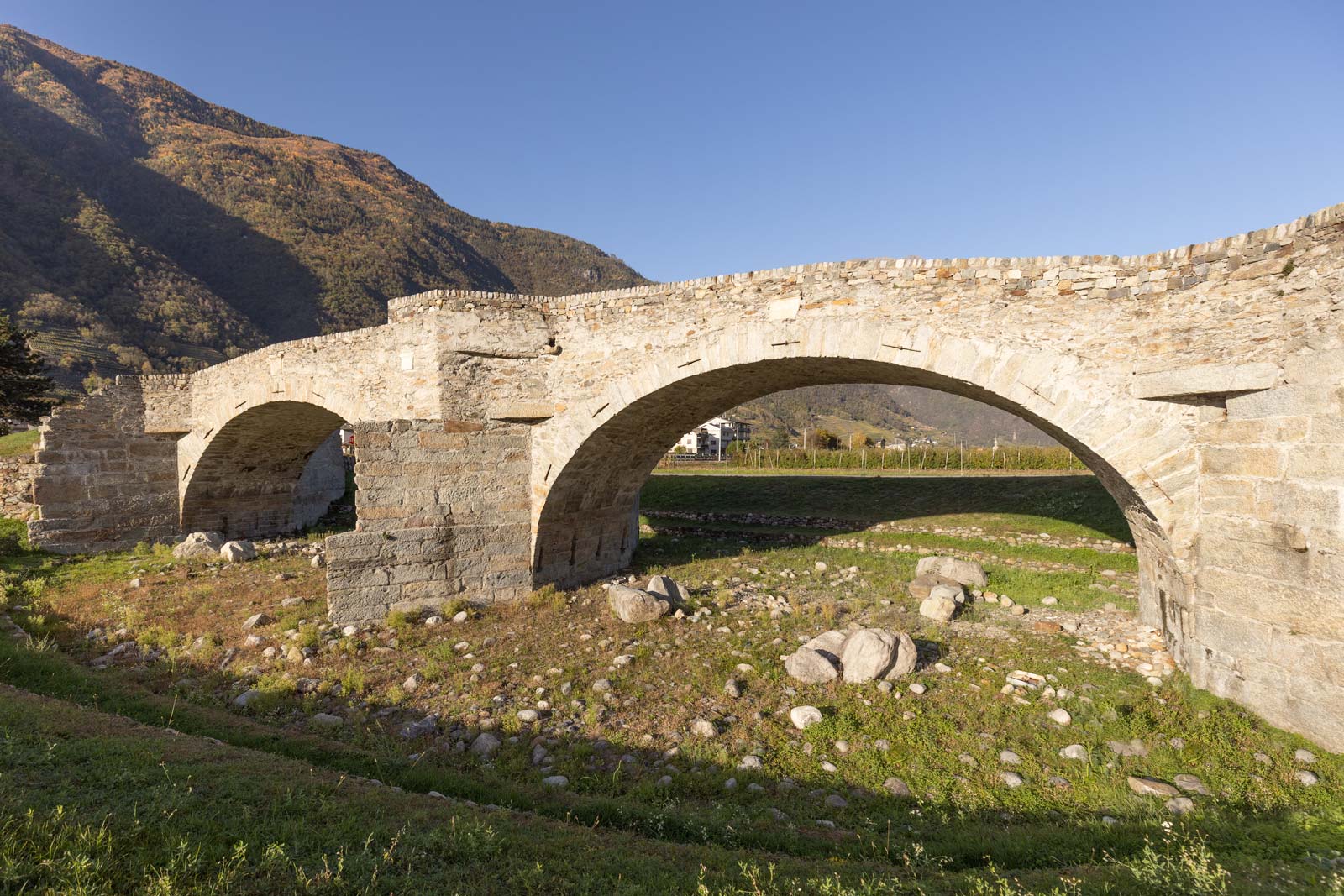 Il ponte, sicuramente altomedievale, se non d’età romana, collegava l’Itinerario Galleno, cioè il cammino dalla Val Camonica alla Valeriana di Valtellina con l’Itinerario Retico del Bernina.