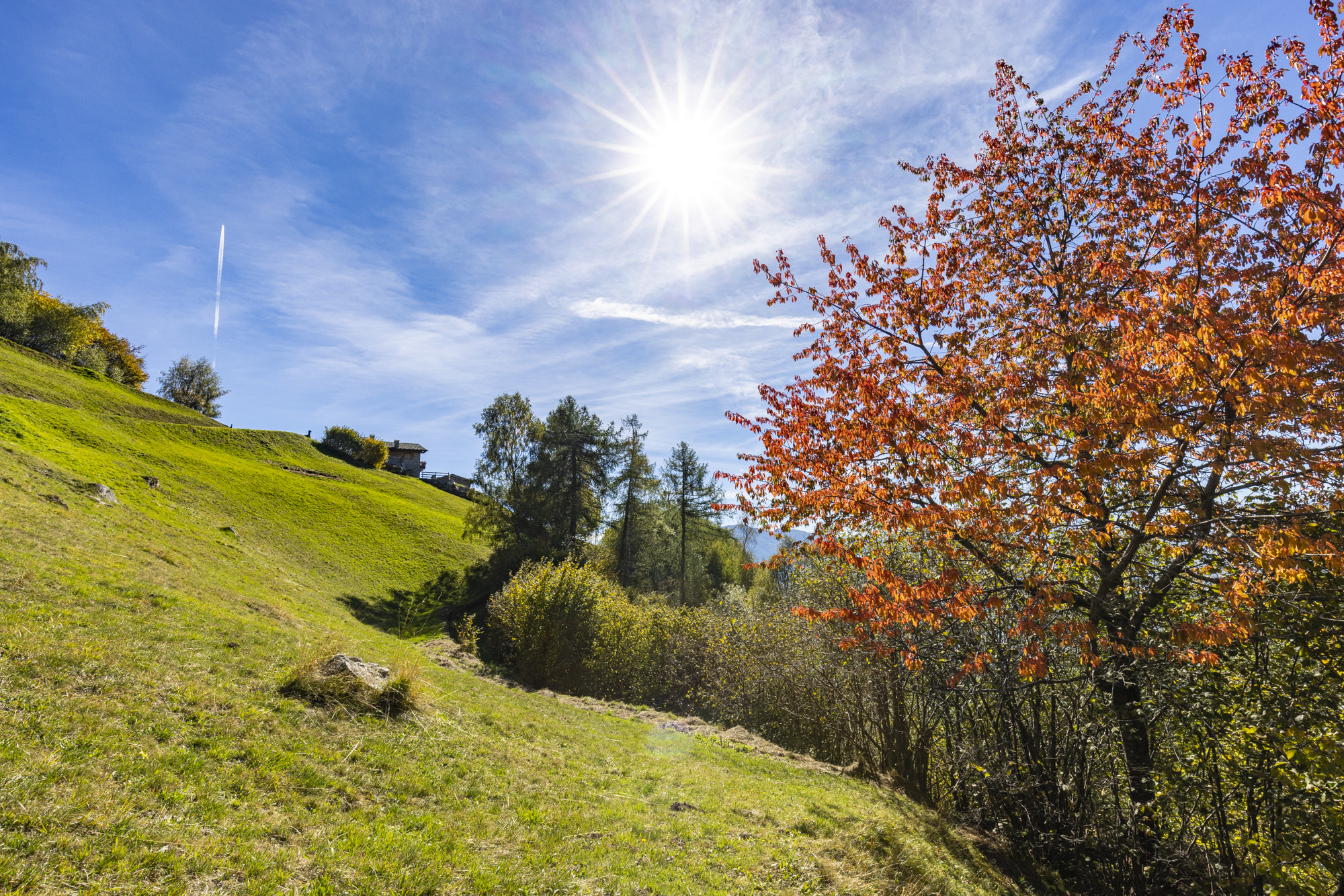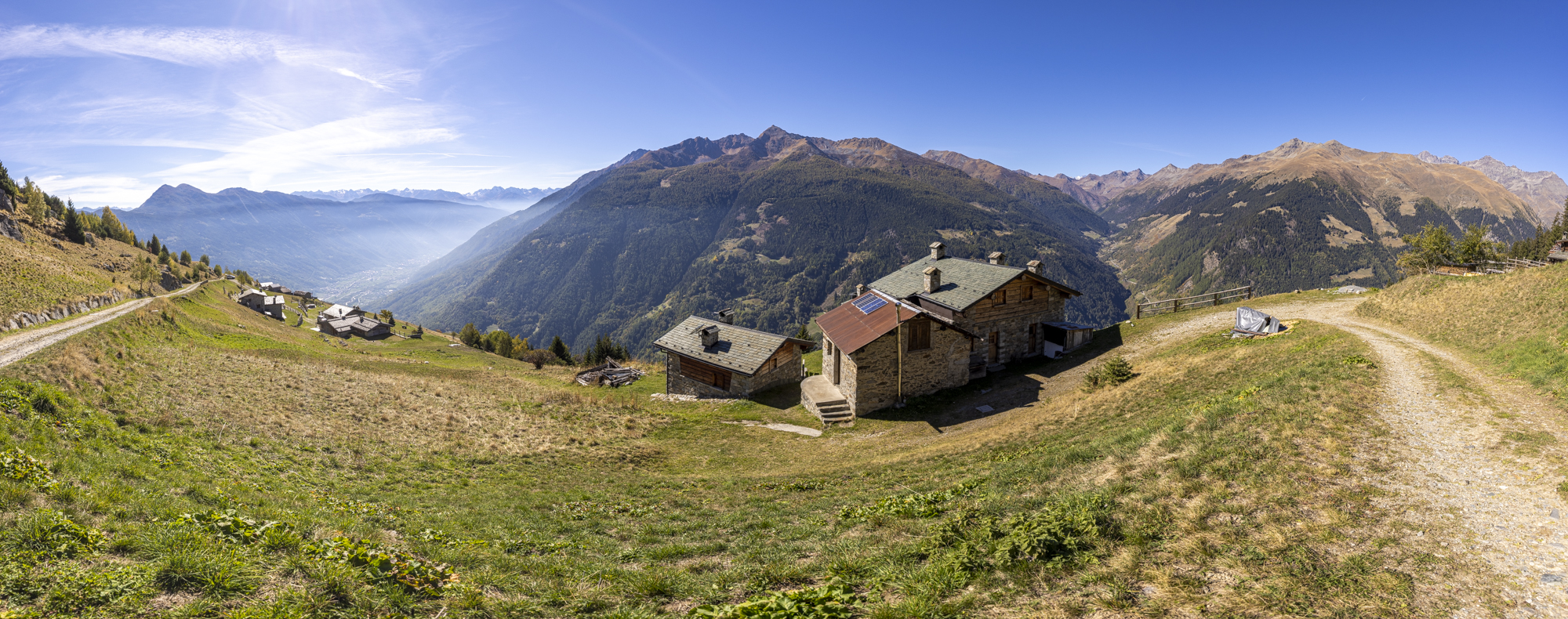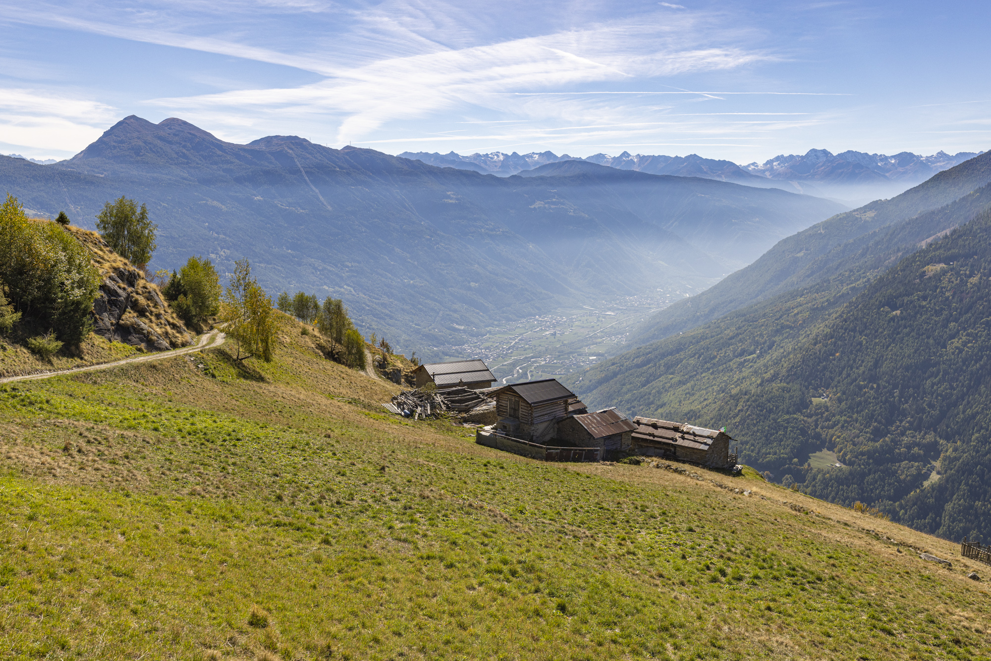 Si attraversano diversi scenari, ampie zone fresche e boscose si aprono su vedute particolarmente panoramiche nei tratti più aspri e rocciosi, per poi lasciare spazio a prati ariosi e baite che si affacciano da un lato sulla Valgrosina e dall’altro sulla Valle dell’Adda.